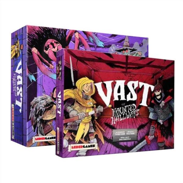 Vast: The Mysterious Manor - A kastély generációk óta elhagyatottan áll a völgy árnyékos részén. A pók, miután megszökött börtönéből, most arra törekszik, hogy visszatérjen régi pompájába, miközben a birtok csontvázszerű őrei továbbra is a sötétségben kavarognak. A paladin pedig eljött a kastélyba vezeklést keresve, melyhez el kell pusztítania a pókot. A Vast elvisz téged és barátaidat egy teljes aszimmetriára épülő, kísértetházban zajló kalandra. Itt nincs vidám utazó csapat, ami a gonosz ellen harcol. A Vastban te veszed át az irányítást a történet bármelyik része felett.   Játssz a jámbor paladin, a gyilkos csontvázak, a félelmetes pók vagy maga a kastély szerepében. Ezen kívül ott van még a Varázsló, aki azért jött ebbe a világba, hogy uralkodjon a többiek elméjén. Minden szerepnek megvan a maga ereje, figurája és a győzelemhez vezető útja... és csak egy győztes lehet! Vast: The Haunted Hallways - Zaklasd ellenfeleidet az Árnyék lovaggal, egy átkozott szörnyeteggel, akit a balszerencse béklyózott meg és aki azon dolgozik, hogy a kastély szobáit saját tervezésű labirintussá alakítsa. Kövesd a Páncélos lovag kalandjait, amint ismét új ellenfelek ellen indul harcba.  A Haunted Hallways két új szerepet is bevezet: az Árnyék lovagot és a Páncélos lovagot. Új, egyedi képességekkel és felszereléssel rendelkező csontvázak jelennek meg, majdnem megduplázva stratégiai lehetőségeiket. A kiegészítő több mint negyven kidolgozott műanyag minit is tartalmaz, köztük erőfalakat, kincseket, tojásokat és pókhálókat.