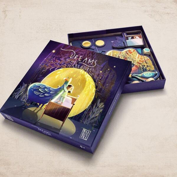 Mit kell tudni a játékról? Álmok és éjjeli lények társasjáték Gyönyörű grafikájú kooperatív társasjáték kisebbeknek 4 éves kortól a magyar Marbushka játékgyártótól, melyben segíteni kell az éjjeli lényeknek biztonságban átjutni a folyón és eljuttatni a szép álmokat a gyerekeknek, anélkül, hogy Álmatlan Úr elkapná őket. A társasjáték csupa izgalmakat tartalmaz, egyrészről az éjjeli lényeket el kell juttatni a fűzfaágyon alvó gyermekhez, másrészt át kell őket juttatni a folyón úgy,  hogy Álmatlan Úr ne kapja el őket. A játékban színdobókocka található, mindegyik színhez más-más akcióval.  Mivel kooperatív, vagyis együttműködős játékról van szó a játékosok megbeszélhetik, megtárgyalhatják, hogy mi lehet a legjobb lépés az adott körben. A játék többféleképpen is véget érhet, ha sikerült mindegyik éjlényt eljuttatni a fűzfaágyhoz a játékosok nyertek. Ha viszont Álmatlan Úr elkapott egy éjlányt a játék véget ér, a játékosok vesztettek. Akkor is vége a játéknak, ha a hal és a teknős eléri a jobb oldali tavat, még mielőtt minden éjlény átjutott volna a túlparta, vagy éppen egy éjlény valamelyik állat hátán maradt, ami már elérte a tavat. A játékot lehet gyorsítani, egyszerűsíteni is, például kevesebb éj-lényt kell eljuttatni a fűzfaágyhoz.  A játékkal fejleszthető a gyerekek szociális-, beszéd- és megfigyelőkészsége is. Az Álmok és éjjeli lények társasjáték szabályát lásd a Letölthető játékszabály fülön! Tartalma: