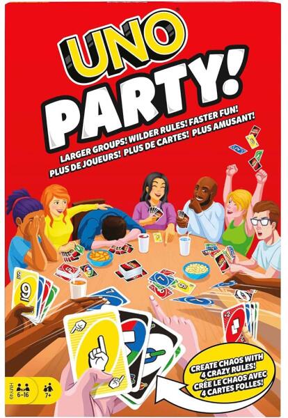 Az UNO Party a klasszikus UNO kártyajáték továbbfejlesztett, még pörgősebb és izgalmasabb verziója, amelyet kifejezetten nagyobb társaságok számára terveztek. Ha eddig szeretted az UNO-t, most még nagyobb nevetésekre és váratlan fordulatokra számíthatsz Ez a változat akár 16 játékosnak is lehetőséget ad a közös szórakozásra, így tökéletes választás családi összejövetelekre, baráti estékhez vagy bulikhoz. A játékmenet alapja továbbra is a klasszikus UNO szabályrendszer: színre színt, számra számot kell rakni, és az akciókártyák megfűszerezik a taktikázást. Az UNO Party azonban egy extra csavart hoz a játékba négy vadonatúj, káoszt teremtő kártyával, amelyek garantáltan megkeverik az állást. Ezek a speciális lapok új stratégiákat igényelnek, és meglepő fordulatokat visznek a játékba sosem tudhatod, mikor borul fel teljesen az eddig felépített taktika A nagyobb létszám és az új szabályok miatt a játék még dinamikusabb és kiszámíthatatlanabb, így garantáltan senki sem fog unatkozni. Ha szereted a pörgős, nevetéssel és izgalommal teli kártyajátékokat, az UNO Party kihagyhatatlan darab a gyűjteményedből Ideális választás gyerekek és felnőttek számára egyaránt, hiszen egyszerű megtanulni, mégis izgalmas marad minden egyes játszma során. Hozd össze a családot és a barátokat egy felejthetetlen UNO Party-ra, és készülj fel az igazi kártyás káoszra Akár 16 játékos is csatlakozhat a mókához Négy új, különleges akciókártya, amelyek meglepő fordulatokat hoznak Gyors és izgalmas játékmenet, amely sosem válik unalmassá Tökéletes családi és baráti összejövetelekhez, bulikhoz 7 éves kortól ajánlott, így az egész család együtt játszhat