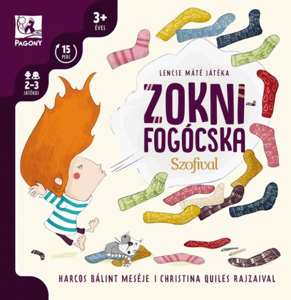 Mit kell tudni a játékról? Zoknifogócska társasjáték A zoknifogócska egy elképesztően zseniális társasjáték a legkisebbeknek, mely a népszerű Pagonyos könyvsorozatok alapján készült. A zoknikártyákat most nem rakosgatni kell, hanem elfújni, mint tortán a gyertyákat. Vidám játék, mely nem kizárólag köt az asztalhoz, mozgásra is szükség lesz. A Szofi tüsszent, és a Szofi varázsol című Harcos Bálint mesékből megismert kislány, Szofi, nem akar zoknit húzni. Anya viszont aggódik, hogy megfázik, és megpróbálja a kislányára ráadni a zoknit, de Szofi nagy tüsszögve elrohan. Vajon utoléri anya a zoknival, vagy marad mezítláb Szofi?