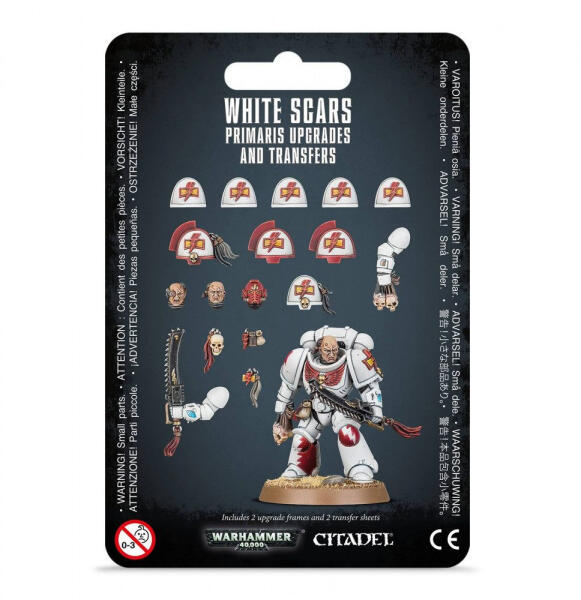Show your allegiance to the sons of Chogoris with this set of upgrades and transfers for your Primaris Space Marines. It can be used to upgrade a variety of squads with iconography and details specific to the White Scars Chapter. Contents: – 5 White Scars Mk X power armour shoulder pads (designed for use with Hellblasters/Intercessors) – 1 White Scars Mk X power armour shoulder pad (for sergeants/characters from Hellblasters/Intercessors squads) – 2 White Scars Gravis armour shoulder pads (designed for use with Aggressors) – 1 White Scars Gravis armour shoulder pad (for sergeants/character from Aggressors squads) – 2 White Scars bare heads – 1 White Scars helmeted head – 1 right arm holding a pair of skulls – 1 left arm holding a chainsword – 3 White Scars decorations including a skull, length of hair and ammo pouch. – Transfer sheet including Chapter, squad and vehicle transfers, as well as campaign badges, squad numbers, rank and honour markings.