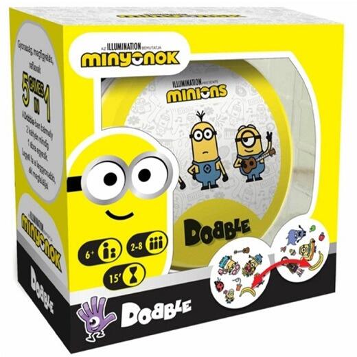 A minyonok társaságát már a népszerű Dobble kártyajátékon is élvezhetjük. a vicces kis sárga lények még szórakoztatóbbá teszik a gyereknek a játékot, ezzel figyelmük is tovább fenntartható lesz.