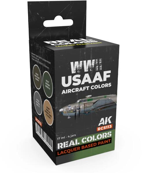 AK Interactive Real Colors Lacquer Based Paint (oldószeres lakk alapú) festékekből álló készlet, melynek színeit a második világháborús amerikai légierő gépeinek rejtőfestésénél hasznosíthatjuk. T...