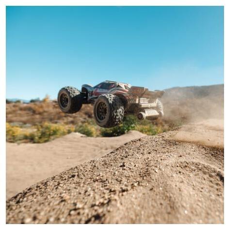 A bevált ARRMA® 4X4 platform lehetővé teszi, hogy szinte bármilyen környezetben, nagy sebességgel közlekedjen - terepen, murván és fűben, parkolóhelyeken, valamint szilárd és aszfaltos felületeken. A váz tartóssága erős kompozit alvázból származik, megnövelt magasságú szennyeződésvédőkkel. Az alkalmazott fém áttételek elegendően tartósak a kefementes motorhoz. A teljesítmény az első és hátsó differenciálon keresztül oszlik el az egyes kerekek között. A maximális tapadást a bevált dBoots gumik biztosítják. A Spektrum SLT távirányító biztonságos működést nyújt, megszakítások nélkül, a gondtalan vezetés érdekében vízálló* alkatrészeket használnak a modellen - Spektrum 2-v-1 85A szabályozó és Spektrum S662 nagy nyomatékú fém áttételekkel rendelkező kormányservo.