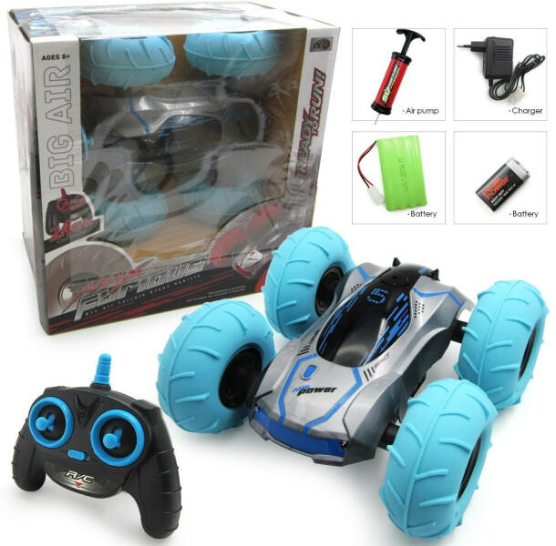 Hatalmas kerekű átfordulós autó, melynek keréknyomását te tudod beállítani a csomagban található pumpa segítségével. Kialakításának köszönhetően nem létezik akadály ez előtt a terepjáró előtt, ha a másik oldalára borul, ugyanúgy képes folytatni az útját! A doboz tartalma: - átfordulós, pumpálható kerekű terepjáró - távirányító - pumpa - akkumulátor - töltő - elem Mérete:25 x 25 cm