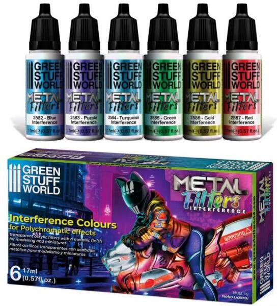 Green Stuff World Metal Filters - Interference Colours metál effekt akrilfesték készlet 6x 17ml (GSW10129)