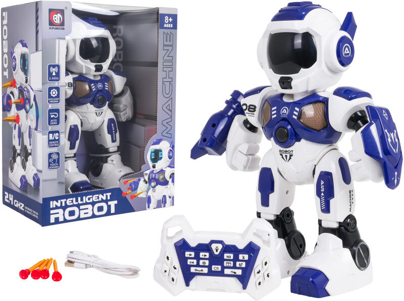 A készlet tartalmaz további kiegészítőket a robotkarhoz: pajzsot és tapadókorongos nyílvetőt. A lövés manuálisan indítható a gomb megnyomásával. A robot és a távirányító elemmel működik, USB-C töltőkábel tartozik hozzá.