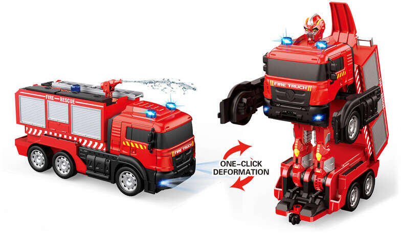 RC Transzformáló Tűzoltóautó: Válts át Robot üzemmódba egy gombnyomással! ?? Lepd meg gyermeked ezzel a fantasztikus 2 az 1-ben játékkal, amely tűzoltóautóból robottá alakul! Ez a távirányítós transzformer autó garantáltan a gyerekszoba kedvence lesz. A termék mérete pont jó, nem túl kicsi és nem túl nagy, ahogy a vásárlók is megerősítették. Főbb jellemzők:Két üzemmód: Tűzoltóautó és Robot Távirányító: Könnyű irányítás előre, hátra, jobbra és balra Egygombos átalakítás: Változtasd át a járművet robottá egyetlen gombnyomással, hangeffekt kíséretében! Vízpermetezés: A tűzoltóautó funkciói közé tartozik a vízpermetezés, még izgalmasabbá téve a játékot. Ajánlott korosztály: 6 éves kortól További információk: A távirányító 2 db AA elemmel működik (nem tartozék). Szuper játék, ami sok örömet okoz, ahogy az egyik vásárló fogalmazott, az unokája kedvence lett! Ez a 2 az 1-ben jármű tökéletes ajándék minden robot- és tűzoltóautó rajongó gyermek számára. Garantált szórakozás és izgalmas játékélmény!