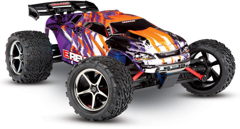 A Traxxas E-Revo 1:16 RC autó teljesen össze van állítva és készen áll a vezetésre