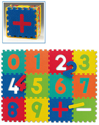 Gyerek puzzle összeillesztheto szonyeg szonyegkockák számokkal, kíveheto számok12 hónapos kortól ajánnlott12 db-os szettFormamide és phtalát mentes EVA hab anyag, Jellemzoi: nagy suruségu, hosszan tartó, rugalmas. Alkalmas: hálószobába, bölcsödébe, óvódába. Szonyeg darabonként: 30 x 30 x 1,2 cm/db