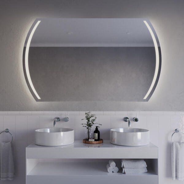 Luxus dizájner LED-es tükör , amely nem csak szépségének és praktikumának köszönhetően varázsolja új térré a fürdőszobáját, hanem különösen a több mint 7 lehetséges kiegészítőnek köszönhetően. :