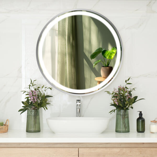 Luxus dizájn LED tükör alumínium keretben, amely új térré varázsolja otthonát, nemcsak szépségének és praktikusságának köszönhetően, hanem különösen a több mint 7 lehetséges kiegészítőnek.