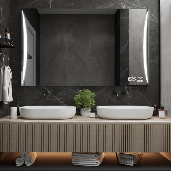 Luxus dizájner LED-es tükör , amely nem csak szépségének és praktikumának köszönhetően varázsolja új térré a fürdőszobáját, hanem különösen a több mint 7 lehetséges kiegészítőnek köszönhetően. :