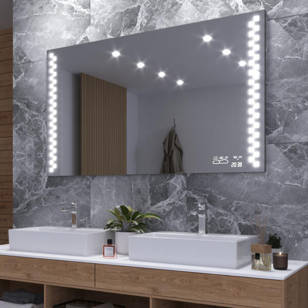 Luxus dizájner LED-es tükör , amely nem csak szépségének és praktikumának köszönhetően varázsolja új térré a fürdőszobáját, hanem különösen a több mint 7 lehetséges kiegészítőnek köszönhetően. :