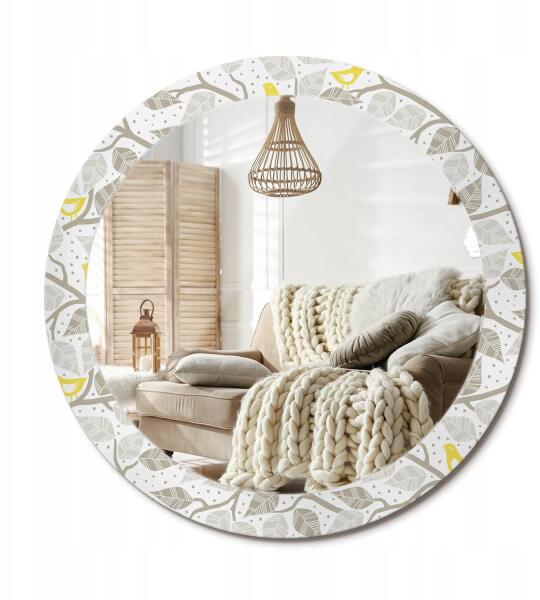 Függő tükör grafikával díszítve üvegen fi 80 cm Sárga madarak az ágakon (010090550110300030007)