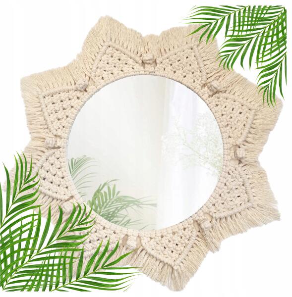 Tutumi Boho Kerek Fali Tükör Makramé Pavilon Keret Zsinór 53 cm Természetes (HOM-03004)