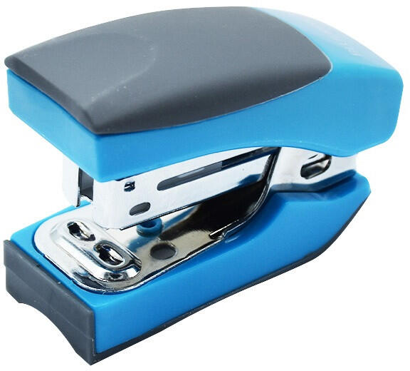 Kis méretű, fémszerkezetű tűzőgép, trendy világoskék színben. Műanyag takaróelemekkel, ergonomikus gumiborítású nyomófelülettel. Beépített kapocskiszedő. 24/6 és 26/6 tűzőkapcsokhoz. Lapkapacitás: 15 lap Tűzési mélység: 27 mm Katalóguskód: 2514