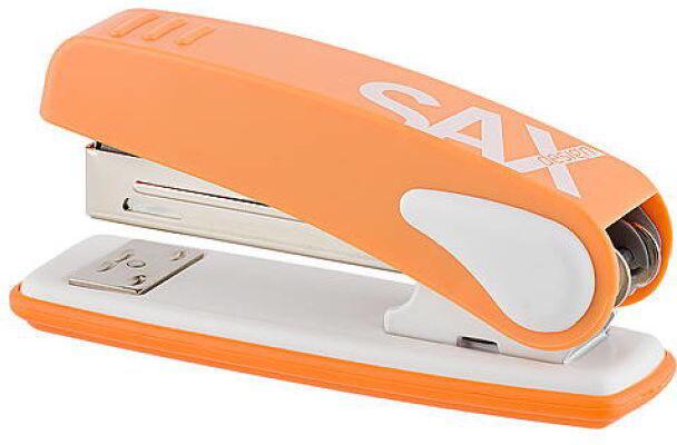Tűzőgép ergonomikus nyomófelülettel. Keresse a színben hozzáillő SAX Design Lyukasztógépeket is!