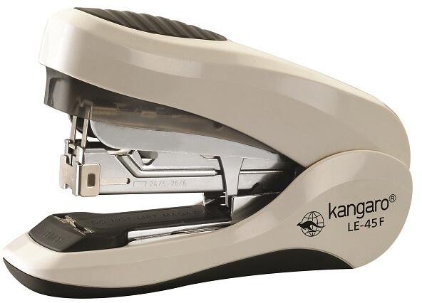 Kangaro LE 45 tűzőgép minőségi acél alkatrészekkel. Anyaga: fém, műanyag házzal. Gyors kapocsbetöltés. Csúszásgátló talp. 45 százalékkal kisebb erőfeszítés más hagyományos tűzőgépekhez képest. Lapos tűzés technika, mellyel 30% helyet spórolhatunk a mappákban. Tűzési kapacitás maximum 30-40 lap, tűzési mélység 48 mm-ig. Tűzőkapocs: 24/6, 26/6 (30 lapig) 24/8, 26/8 (40 lapig)