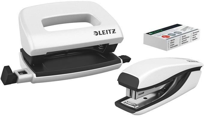 Leitz Tűzőgép és lyukasztó szett, 10 lap, fém, LEITZ Wow Mini , fehér (55612001)