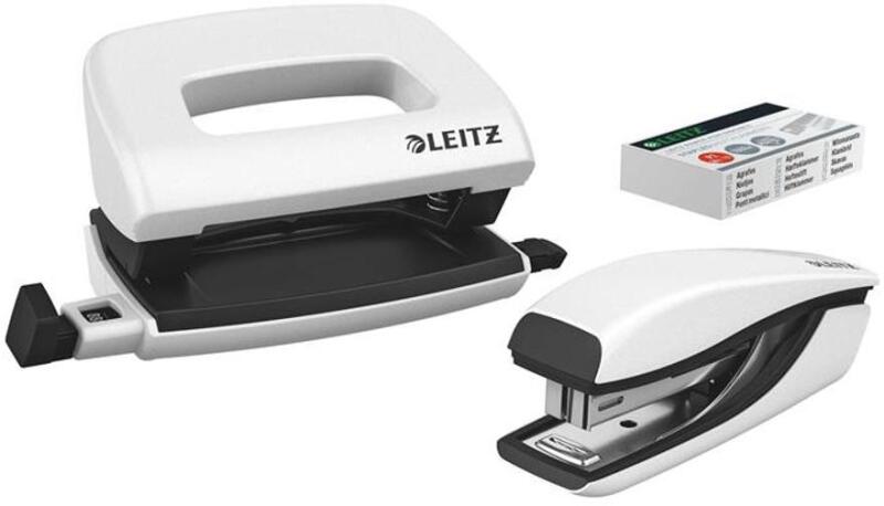 Leitz Tűzőgép és lyukasztó szett, 10 lap, fém, LEITZ "Wow Mini", fehér (E55612001) - fiorex