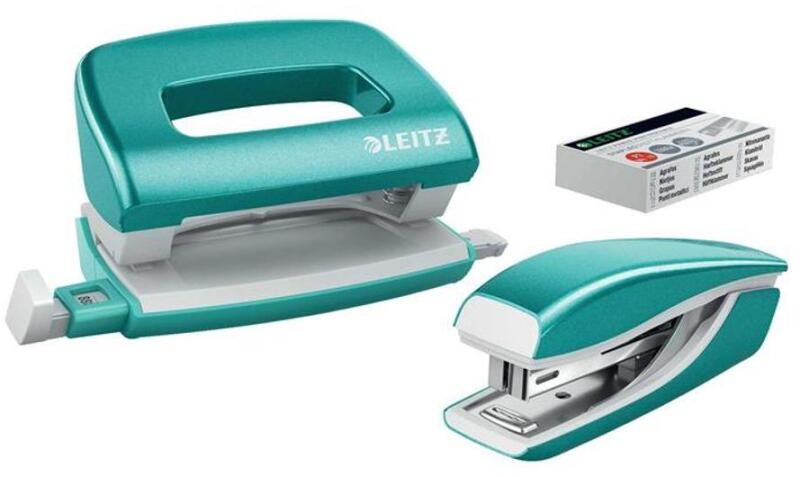 Leitz Tűzőgép és lyukasztó szett, 10 lap, fém, LEITZ "Wow Mini", jégkék (E55612051) - fiorex