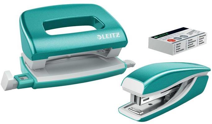 Leitz Tűzőgép és lyukasztó szett, 10 lap, fém, LEITZ Wow Mini , jégkék (E55612051)