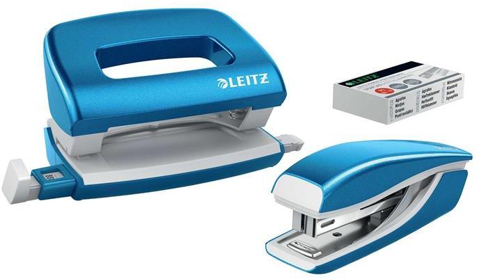 Leitz Tűzőgép és lyukasztó szett, 10 lap, fém, LEITZ Wow Mini , kék (55612036)