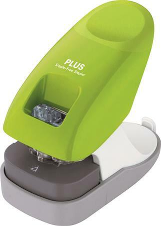 PLUS Corporation Kapocs nélküli tűzőgép, asztali, 10 lap, PLUS, zöld