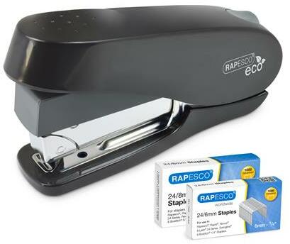Rapesco Tűzőgép, 24/6-8, 26/6-8, 50 lap, könnyített tűzés, antibakteriális, RAPESCO ECO Luna Less Effort, fekete (IR1466)
