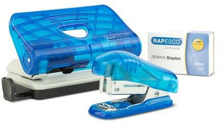 Rapesco Tűzőgép és lyukasztó szett 24/6, 26/6, 12 lap, RAPESCO, átlátszó kék, tűzőkapoccsal - oneclick