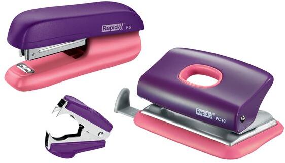 Rapid F5 Mini 10 lap kapacitású tűzőgép lyukasztó és kapocskiszedő szett - Lila/Barack (3 db-os szett) (5000372) (5000372)