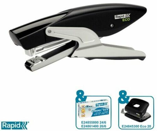 Rapid Tűzőgép, kézi, újrahasznosított, 24/6, 26/6, 20 lap, RAPID "Eco", fekete (24812500)