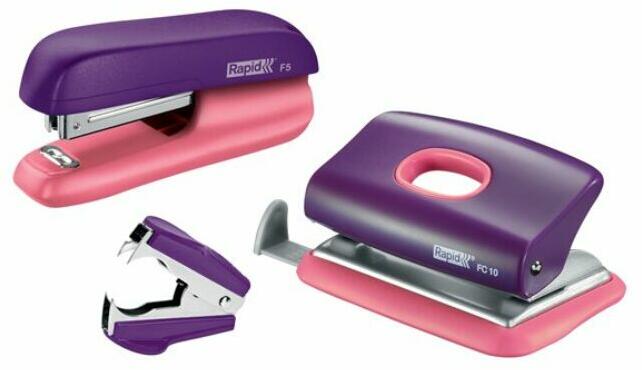 Rapid Tűzőgép, lyukasztó és kapocskiszedő szett, 10 lap, RAPID "F5 Mini", lila/barack (E5000372) - jatekotthon