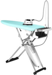A vasalórendszer nagyon praktikus tervezésű, könnyedén elővehető és eltehető. A vasalódeszka összecsukott állapotban mindössze 20 cm-es, így nagyon könnyen eltehető. A vasalódeszka széles felülete, ami az egyik végén elkeskenyedik, minden ruhatípus vasalására alkalmas. 6 állítható magasság teszi ideálissá a vasalódeszkát mindenki számára. A praktikus beépített kerekek megkönnyítik a vasalórendszer mozgatását.