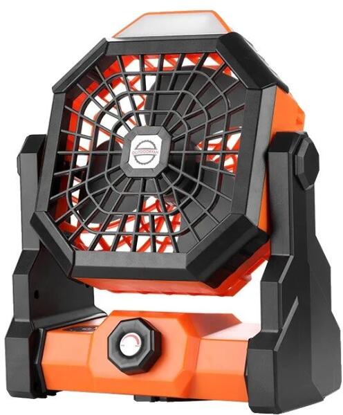 Kempingventilátor, USB újratölthető, állítható sebesség, narancssárga