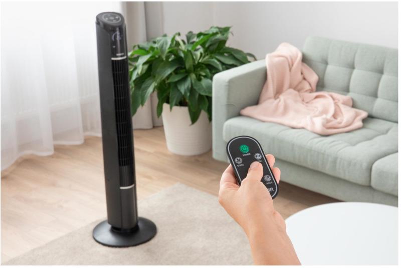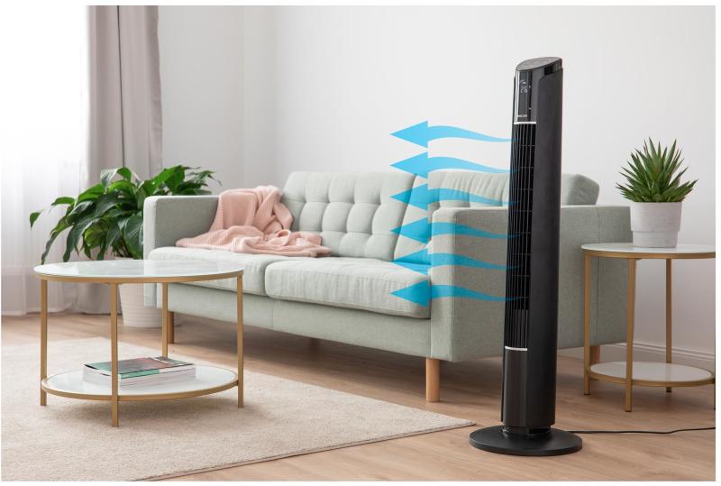A csendes és intelligens Sencor SFT 4207BK oszlop ventilátor nem csak a forró nyári napokon lesz az Ön segítőtársa. A nem feltűnő kialakítású ventilátor csendességével és helytakarékosságával lepi meg a felhasználót. A maximális zajszint 58 dB, így nem zavarja a felhasználókat nappal vagy akár éjszaka sem. Időzítő funkcióval is rendelkezik, amely 1-12 órás tartományban állítható be. A kívánt működési időtartam után a ventilátor automatikusan kikapcsol. A Wi-Fi-n keresztül vezérelhető készülékek közé tartozik a Sencor HOME applikáció segítségével. A felső részen egy érintőképernyős vezérlőpanelt is talál, a ventilátor előlapján pedig egy LED kijelzőt, amin ellenőrizhető a helyiség aktuális hőmérsékletét. Kényelmesen vezérelhető a csomag tartalmát is képező távirányítóval is. A ventilátor 3 sebességfokozattal és 4 előre beállított programmal rendelkezik. Nagy előnye a ventilátor beállításainak variálhatósága. Vízszintes oszcillációt és függőleges billentést kínál két szögben. Így a légáramlást teljesen az igényeihez igazíthatja.