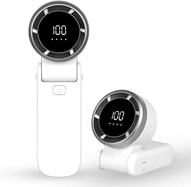 Techsuit - Prémium mini kézi ventilátor (A9) - LED digitális kijelzővel, USB-C újratölthető, 5 sebességfokozatú, 5000mAh - Fehér