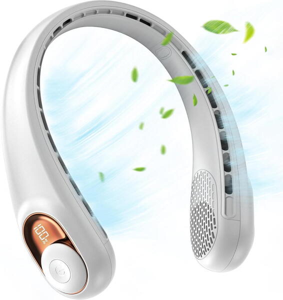Techsuit - Nyakventilátor (S9) - Hordozható, Digitális kijelzővel, 3 Szélsebesség, 5200mAh, 5800RPM - Fehér
