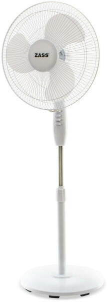 Zass Álló ventilátor, teljesítmény 45W, 3 sebességfokozat, állítható magasság, seprés, lengés bal jobb, átmérő 40 cm Részletek: Zass ZF 1614 lábventilátor Elektromos teljesítmény: 45 W. Alumínium motor. Állítható magasság (maximum 1,2 m). Erőteljes szellőzés, 3 hatékony és csendes lapáttal. Fém védőrács (430*102mm). Nehéz, kerek alap a stabilitás és a biztonság érdekében. A védőrács átmérője 40,6 cm (16). Erős és csendes motor. Könnyen használható és felszerelhető. 220 V~, 50 Hz, 45 W.