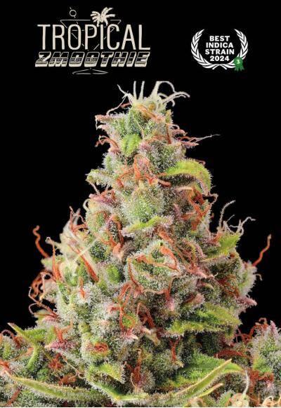 A Tropicana Zmoothie Autoflower kétségtelenül az egyik legnépszerűbb marihuána fajta a magas kannabinoid-tartalma miatt. Gyorsan növekvő, 50% indica/50% sativa hibrid, amely igazán nagy termést és különösen magas kannabinoid-tartalmat ígér, elsősorban THC-t. A Tropicana Zmoothie Autoflower egy olyan növény, amely eredetileg két, hihetetlen terpénprofiljuk miatt népszerű amerikai törzs, a Tropicana Shoes és a Zmoothie Zignature keresztezésével jött létre. Ezután jött még egy keresztezés a Mandarin Panties Auto-val, aminek hatására a kialakult kannabisz fajta erősen citrusos, trópusi aromára tett szert. Ezek a kannabisz magok feminizáltak, egyúttal önvirágzóak, azaz autoflower változatúak is, ami garantálja a rövid életciklust, anélkül, hogy aggódni kellene a fényciklus hossza miatt. Az automatikusan virágzó növények az életkoruk alapján kezdenek el virágozni (körülbelül egy hónapos növekedés után), nem pedig a fényciklus változásának hatására, mint a hagyományos feminizált