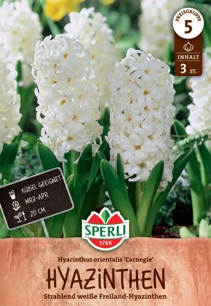 A 'Carnegie' jácint fehér virágai színben illeszkednek minden ágyásba és sok más tavaszi növényhez cserépben és ládában. Főleg csoportosan ültetve ez az illatos kerti jácint nagyszerű látványt nyújt. A virágzatok, sok kis egyes virággal, márciusban és áprilisban díszítik a körülbelül 10-20 cm magas növényeket. A 'Carnegie' a legjobban napfényben és félárnyékban érzi magát. Mivel a jácintok télállóak és évelők, egyszeri ültetéssel minden évben újra és újra csodálatos virágpompát varázsolnak a kertbe nagyobb erőfeszítés nélkül.