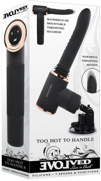 Vibrator Too Hot To Handle egy fejlett tervezés, amely eddig soha nem látott magasságokba repít. A mellékelt tapadókorongos talp révén csodálatos, kéz nélküli stimulációt élvezhetsz. Csupán kattintsd be a karcsú szárat a talpba, és merülj bele a 7 rezgési üzemmód és a 7 lökési funkció nyújtotta élvezetbe, akár 1,75 cm mozgástartománnyal. Az imitált felmelegedési funkció eléri a 35 fokot , reális élményt biztosítva. A luxus dizájnt rózsaarany részletek díszítik, és a felhasználóbarát vezérlőpanel mindössze 3 gombot tartalmaz az összes elérhető funkcióhoz. A szár stimuláló bordázott részletekkel rendelkezik, és levehető, így könnyen tisztítható langyos vízzel és játéktisztítóval. A talp fröccsenésálló, de nem meríthető teljesen vízbe . Használat után egyszerűen tárolhatod a szárat diszkréten a hosszú fogantyúban, és zárd le a talpat a mellékelt kupakkal. A vibrátor a mellékelt USB kábel segítségével tölthető, így mindig készen áll a következő kalandra.