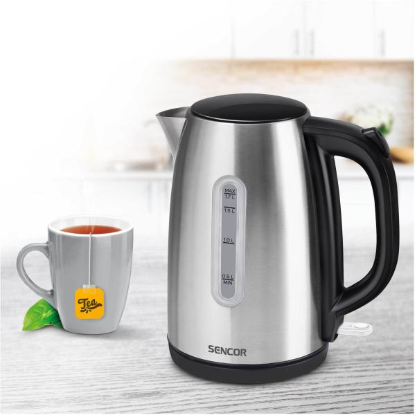A Sencor SWK 1720BK egy nagy teljesítményű nemesacélból készült elektromos vízforraló 2200 watt maximális teljesítménnyel, mellyel időt és energiát takaríthat meg. Akár 1,7 liter vizet is képes egyszerre felforralni, így 3-5 fős háztartásokba megfelelő választás. A készülék használatát ergonomikusan kialakított fogantyú teszi kényelmesebbé, valamint a markolatba épített fedélnyitó gomb.