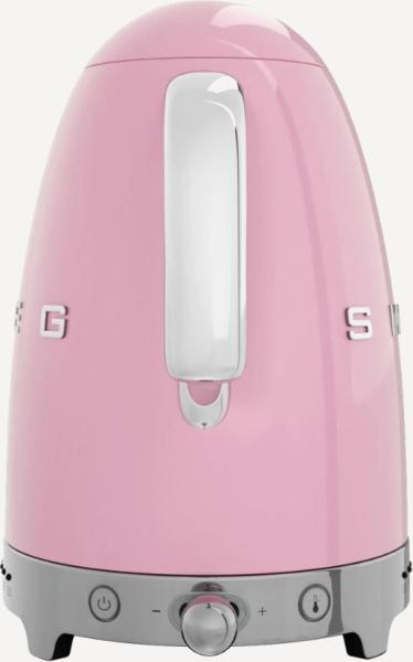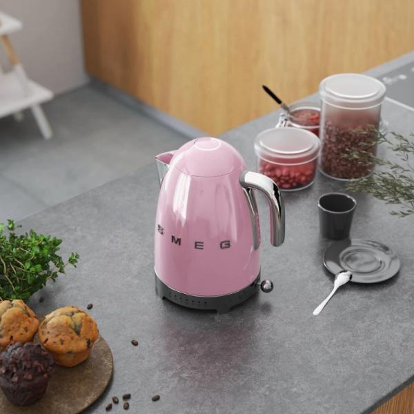 A Smeg KLF04PKEU vízforraló az 50-es évek jellegzetes retro dizájnját a modern funkcionalitással ötvözi. 1,7 literes kapacitása révén akár 7 adag ital is elkészíthető, így ideális választás családi vagy baráti összejövetelekhez. A 7 állítható hőmérsékleti fokozat (50 és 100 °C között) lehetővé teszi az optimális vízhőmérséklet kiválasztását a különleges teákhoz vagy a french press módszerrel készített kávéhoz. Extra funkcióként a készülék képes a kívánt hőmérsékletet akár 20 percen keresztül fenntartani. A Soft Opening rendszerű fedélnyitás és a 360°-ban forgatható talp kényelmes és biztonságos használatot biztosít, míg a kivehető vízkőszűrő tovább növeli a praktikumot.