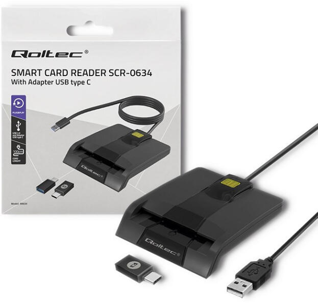 Qoltec 50634 Intelligent Smart ID chip card reader SCR-0634 | USB Type C (50634)