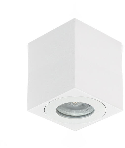 Matt fehér színű alumínium felületre szerelhető fix mennyezeti spot lámpa GU10-es foglalattal, IP44-es védelemmel.