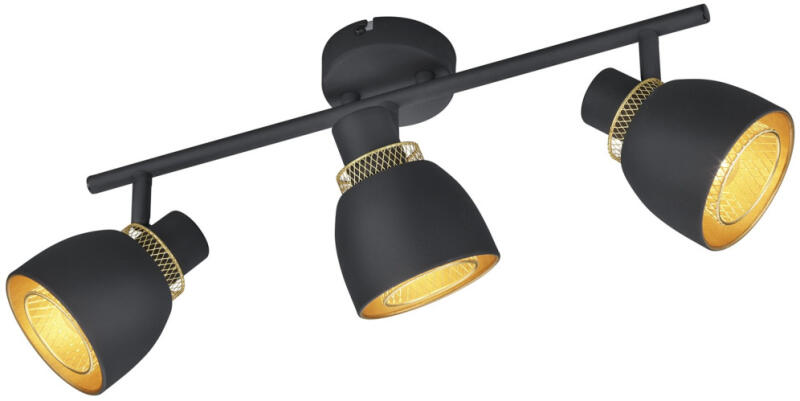 Fekete színű fém vázas mennyezeti spot lámpa fekete-arany színű fém búrával, E14-es foglalattal. A lámpa egyéb jellemző(i): állítható fejű lámpa.